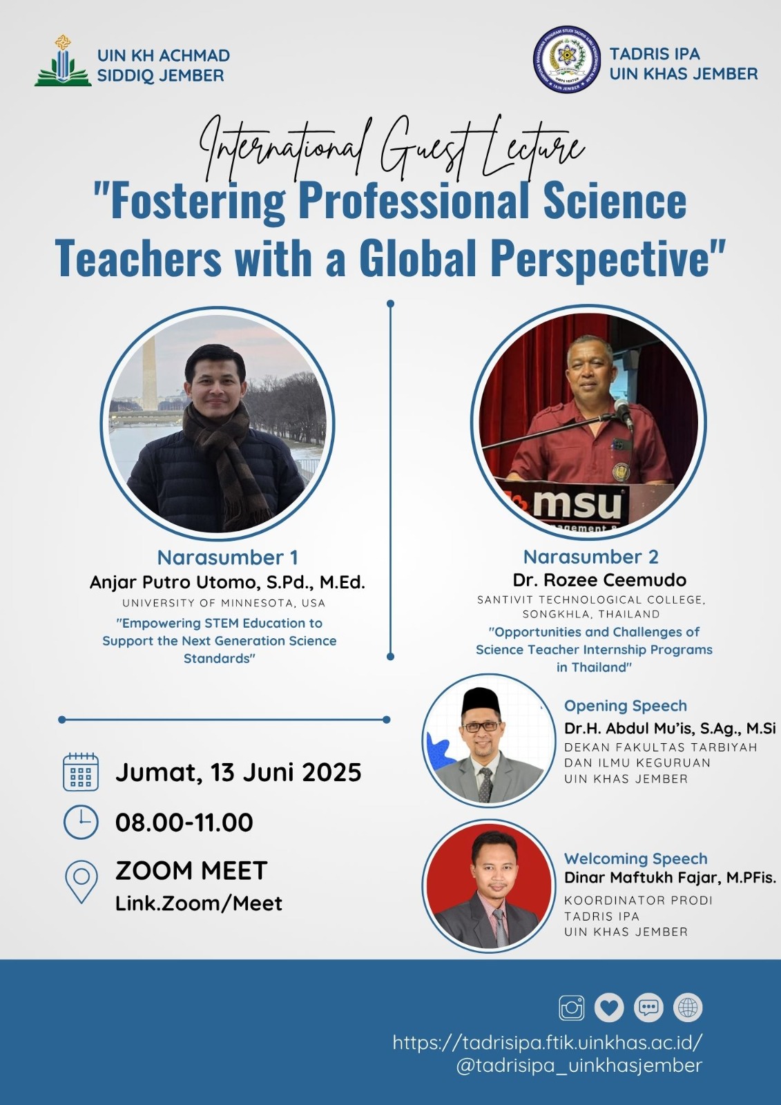 Jember – Program Studi Tadris Ilmu Pengetahuan Alam (IPA) UIN Kiai Haji Achmad Siddiq (KHAS) Jember kembali menghadirkan kegiatan International Guest Lecture pada Jumat, 13 Juni 2025. Kali ini, tema yang diangkat adalah “Opportunities and Challenges of Science Tea...